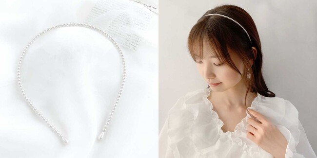 少しエレガントな印象にしたいときは細目のカチューシャがおすすめです。