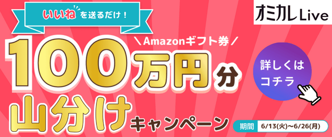 婚活マッチングアプリ「オミカレLive」"100万円分山分けキャンペーン"を開催!Amazonギフト券がもれなくもらえる!