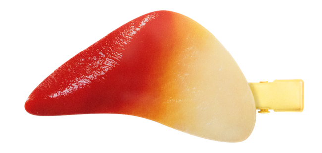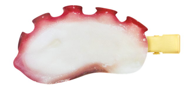 表から見ても裏から見てもお刺身デザインの前髪クリップ。クリップ部分がお箸になっています。