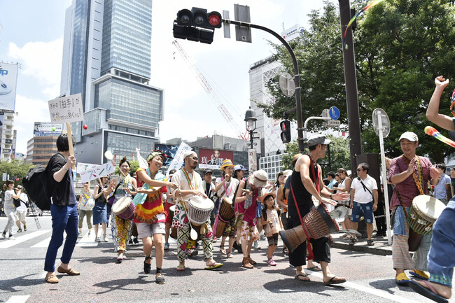 渋谷の中心となるスクランブル交差点や明治通りなどを練り歩くパレードが、実に8年ぶりに復活。今回は「音楽で世界平和を願う」をスローガンに掲げ、約250人の大所帯で、音楽解放区にふさわしいパレードを行います。参加者には「渋谷ズンチャカ!特製うちわ」をプレゼント。