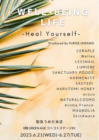 株式会社 HIROE STYLE LAB.(代表取締役:平野宏枝)は、2023年6月21日(水)~2023年6月27日(火)に、阪急うめだ本店 GREEN AGE 8階にて「WELL-BEING LIFE - Heal Yourself -」EVENTをプロデュース開催いたします。