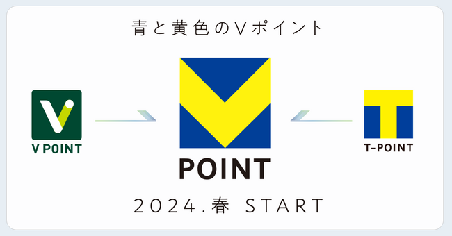 新ポイント『Vポイント』は、サービス開始から今年で20年を迎える、日本で最初の共通ポイントとして約1.3億(有効ID数)のお客さまにご利用いただいているTポイントと、SMBCグループが提供し、世界中のVisa加盟店で使えるVポイントが一緒になることで生まれる、新しい共通ポイントです。より多くのお客さまがポイントを意識せずともよく貯まり、使いやすく自由で安心で特定の経済圏に縛られない、「みんなが使えるポイント」を目指していく想いを込めております。多くのお客さまに支持されてきたTポイントの青と黄のカラーはそのままに、世界中のVisaで使えるVポイントを融合した新ポイントの世界を表現しております。