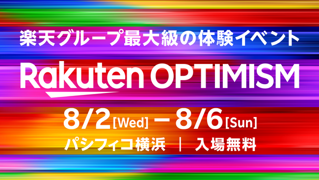 楽天グループ株式会社(以下「楽天」)は、グループ最大級の体験イベント「Rakuten Optimism 2023」(以下「本イベント」)を2023年8月2日(水)から8月6日(日)の5日間、パシフィコ横浜にて開催いたします(入場無料)。本イベントは、「楽天エコシステム(経済圏)」の概念とサービスへの理解促進を図るとともに、多くの方に新たな発見のきっかけとなる場を提供することを目的としています。2019年以来4年ぶりにリアル形式での実施となり、一般来場者も無料で楽しめます。本日より公式サイト( https://optimism.rakuten.co.jp/ )にて、スピーカーやコンテンツなど最新情報を公開し(注1)、ビジネスカンファレンスへの参加登録(無料)も開始しました(注2)。