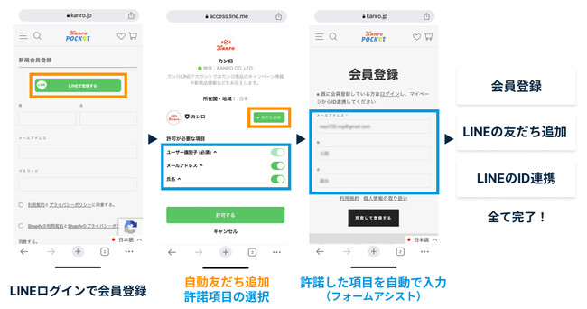 特に、カンロと親和性の高い友だちを増やすという点で、LINEログインの導入が効果的でした。