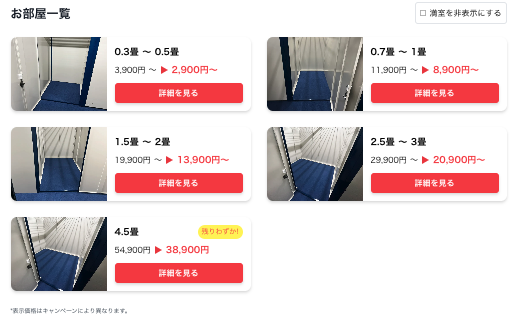 荷物以上に大きな部屋を借りてしまうことや、狭すぎて荷物が入らなかったなんていうトラブルを回避できます。