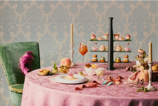 今回のアフタヌーンティーでは、世代を超えて今もなお愛されるフランス王妃“マリー・アントワネット”が過ごした18世紀フランス宮廷の世界観を桃のスイーツで表現。