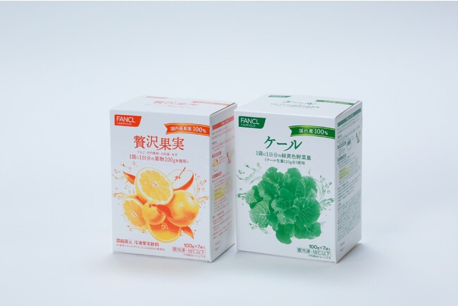 株式会社ファンケルは7月20日(木)から、それぞれ冷凍したケールと国産果実100%果汁を混ぜてお召し上がりいただく、「国産ケールと贅沢果実の充実搾りセット」<価格:2,500円(税込)/14袋入り(ケール100g×7袋、国産果汁100g×7袋)>を通信販売にて数量限定で発売します。1杯当たり、1 日に必要な緑黄色野菜(120g)と果実(200g)※1を使用しています。ケールと果汁を合わせることで、誰にでも飲みやすく、気軽に野菜と果物を摂取できる健康飲料として開発しました。青汁が苦手な方など、今まで青汁を飲んだことがない方にもお勧めの製品です。