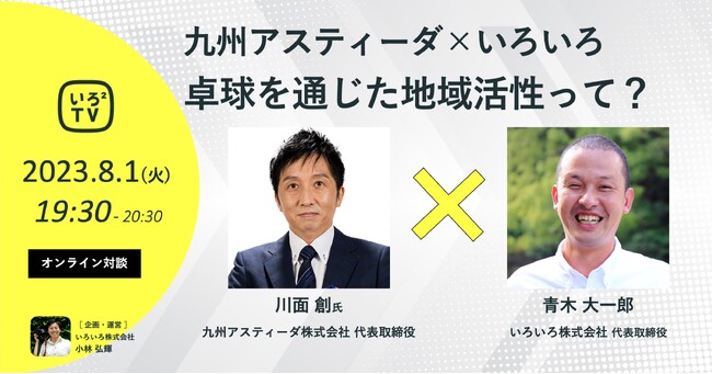 今回のパートナーシップに基づく活動の詳細、今後の展開について、いろいろTVの特別企画として8月1日(火)19:30より、九州アスティーダ代表の川面氏と当社代表の青木による対談形式で発表いたします。