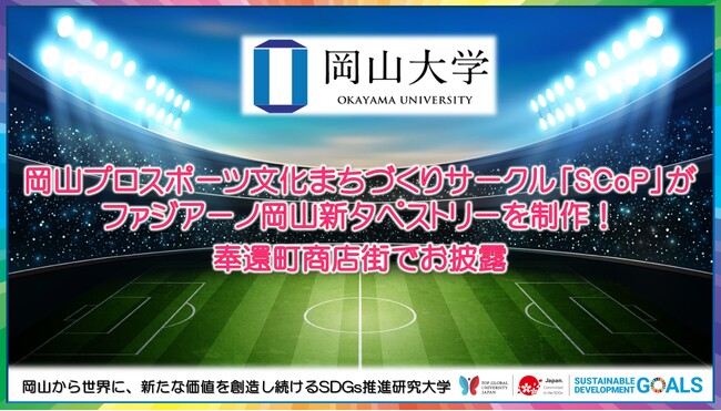 【岡山大学】岡山プロスポーツ文化まちづくりサークル「SCoP」がファジアーノ岡山新タペストリーを制作! 奉還町商店街でお披露