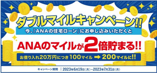この度、2023年6月19日(月)より、「ANAの住宅ローン ダブルマイルキャンペーン」(以下、本キャンペーン)の実施をいたします。
