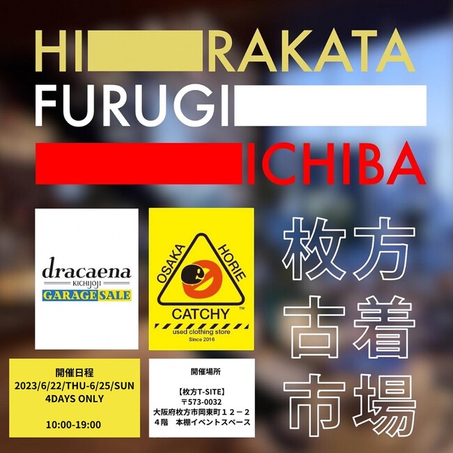 枚方T-SITE(大阪府枚方市)は2023年6月22日(木)~6月25日(日)の4日間、「第2回・枚方古着市場」を開催します。東西の人気古着ショップ「ドラセナガレージセール」(東京・吉祥寺)と「CATCHY」(大阪・堀江)の2店が出店し、前回の2倍に当たる3,000点以上のメンズ・レディス古着、雑貨をご覧いただけます。自分だけの一点を探しにお越しください。