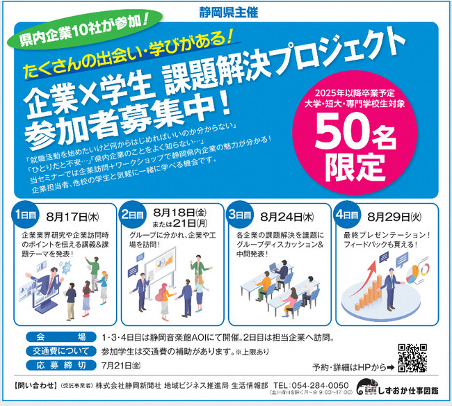 【大学1、2年生必見】「静岡県内企業×学生 課題解決プロジェクト」を開催します