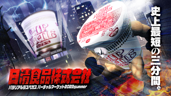 本イベントに、日清食品株式会社の初出展が決定。企業出展会場となる、「パラリアルラスベガス」の街に「カップヌードル」をモチーフとした大型ブースを出展。「カップヌードル」の工場見学体験や、VRならではの演出が楽しめるオリジナル脱出アクションゲーム、フォトスポット、おみやげコーナーなどを展開します。