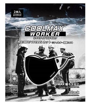 これまで屋外や工場などで働く人のために、接触冷感と高フィルター性能を備え、呼吸しやすい構造を持つ業務用マスク『COOLMAX(R) WORKER』を法人向けに提供してきましたが、この度店頭でもご購入いただけるようになりました。