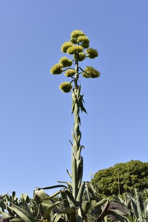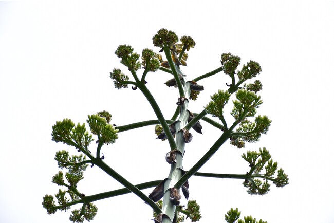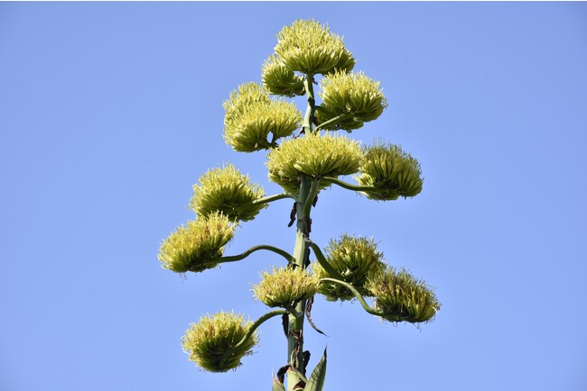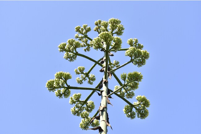 生涯の終わりに一度だけ開花し、花が咲き終わるとその株はゆっくりと枯れてゆきます。花が咲くまでに30~40年を費やすため、古くは、100年に一度開花する“センチュリー・プラント”とも言われていました。
