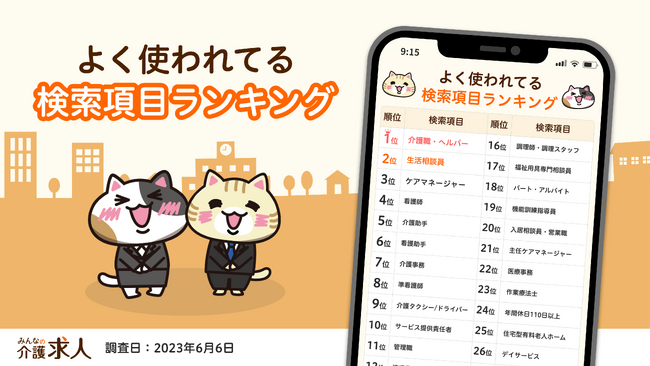 2位に「生活相談員」、3位に「ケアマネージャー」がランクインしました。