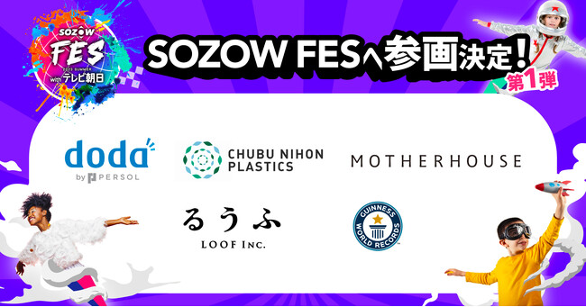 「好奇心と可能性を解き放ち、未来をSOZOWする学びの生態系をつくる」をビジョンに掲げるSOZOW株式会社(所在地:東京都品川区、代表取締役:小助川 将)は、株式会社テレビ朝日と共同開催する親子体験型オンラインフェス「SOZOW FES 2023 Summer with テレビ朝日」にdoda(パーソルキャリア株式会社)様、株式会社中部日本プラスチック様、株式会社マザーハウス様、株式会社LOOOF様、ギネスワールドレコーズジャパン株式会社様が参画することが決定したことをお知らせいたします。