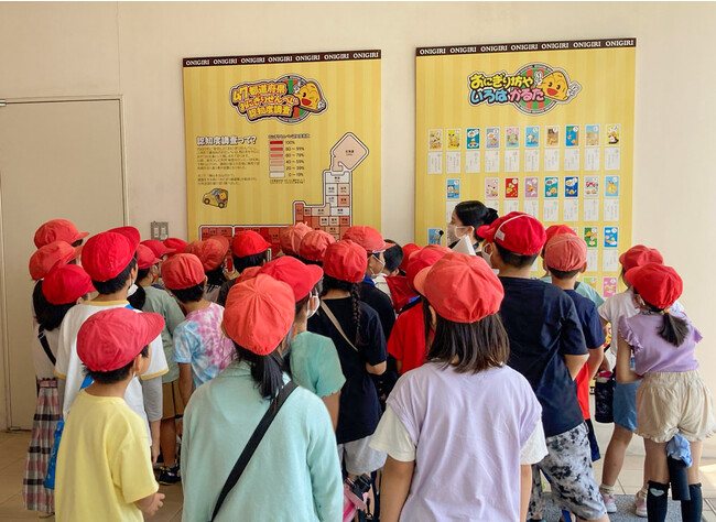 DVDを見てお腹がへった所で、1人2枚ずつ「おにぎりせんべい」を試食していただきました。実はこの「おにぎりせんべい」はここでしか食べられない特別な「おにぎりせんべい」!その秘密は、なんと…1時間前に出来たばかりの超出来立ての「おにぎりせんべい」なんです。早速食べてみると「いつもよりサクサクする!」「味が濃くておいしい!」と大好評でした。