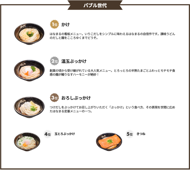 ■「Z世代vs.バブル世代!はなまるの人気うどんランキングTOP5」