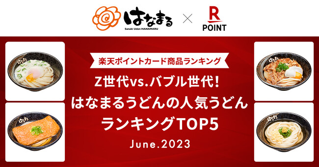 株式会社はなまる(以下「はなまる」)と楽天ペイメント株式会社(以下「楽天ペイメント」)は共同で、「楽天ポイントカード商品ランキング」において「Z世代vs.バブル世代!はなまるの人気うどんランキングTOP5」を発表しました。