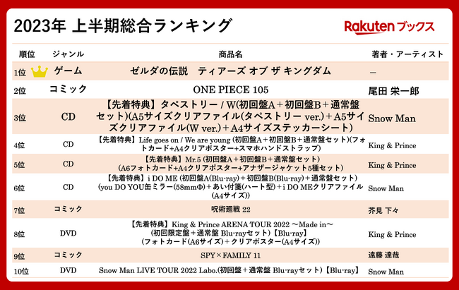 ■「楽天ブックス」2023年 上半期総合ランキング