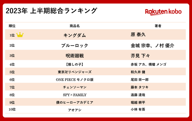 ・「楽天Kobo電子書籍ストア」2023年 上半期総合ランキング