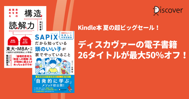 6/21から7/12の間、Kindleにて、ディスカヴァーの電子書籍26点が30~最大50%オフになるお得なキャンペーンを開催中です。