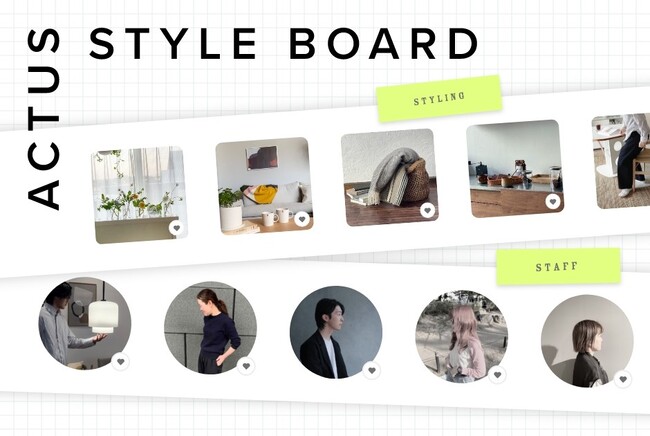 当社は“日本で一番インテリア好きが働く会社“を自負し、以前より「丁寧な暮らし」をテーマに、公式HPやInstagramなどのオウンドメディアを通じて、インテリアのスタイリング、ライフスタイル提案を行っています。今回開設したアクタススタイルボードは、オンライン上での商品販売ページとは別に、アクタスで働く店舗スタッフが、自身の「好き」や「こだわり」をテーマに商品やコーディネートを投稿することで、ストアと顧客ではなく、スタッフ個人と顧客とのつながりへと進化させ、OMO時代の小売りのリアルとデジタルの相乗効果をねらいます。