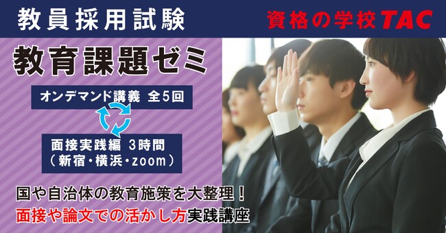 資格取得に向けた教育サービスを展開しているTAC株式会社(東京都千代田区、代表取締役社長:多田 敏男)では、教員採用試験を受験する方に向けて、2023年夏に面接対策講座「教育課題ゼミ」を新規開講します。