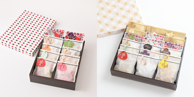 ちょこっと食べたいおやつ菓子をバリエーション豊かに18袋詰め合わせた「ギフトBOX L」、10袋詰め合わせた「ギフトBOX M」のご用意もございます。