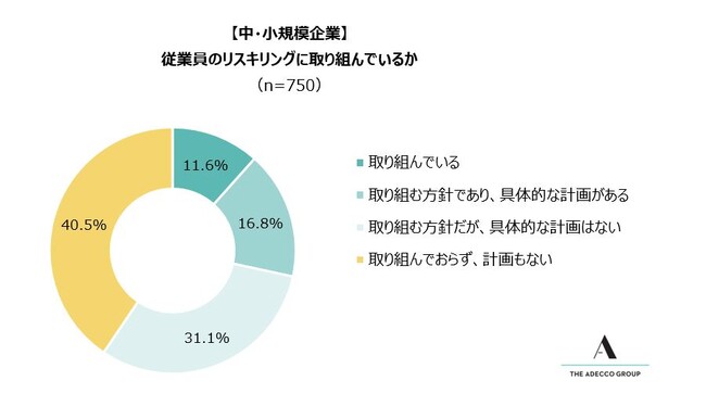 一方、「取り組んでいる」と回答した中・小規模企業(従業員数1,000人未満の企業)所属の人事担当者は11.6%のみでした。40.5%は、「取り組んでおらず、計画もない」と回答していました。