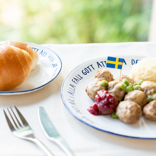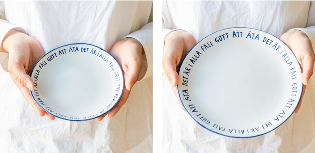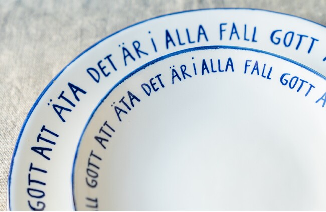 お皿の言葉「Det ar i alla fall gott att ata」についてマリアンヌが語りました。