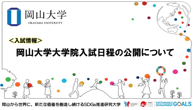 国立大学法人岡山大学(本部:岡山市北区、学長:那須保友)では、岡山大学大学院入試日程(2023年10月入学及び2024年4月入学)について、以下の通り公開しましたので、お知らせします。