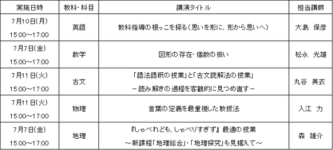 駿台予備学校名古屋校では、高等学校の先生方を対象とした「教科指導研究会(英語・数学・古文・物理・地理)」を、下記の日程で対面(ライブ)開催をいたします(アーカイブ配信はございません)。