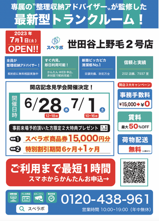 【世田谷上野毛2号店/7月1日(土)オープン】見学から契約、解約まで完全非接触・非対面、お申し込みからご利用まで最短1時間!都内、大阪などで絶賛運営中のトランクルーム【スペラボ】が上野毛駅近くに出店!