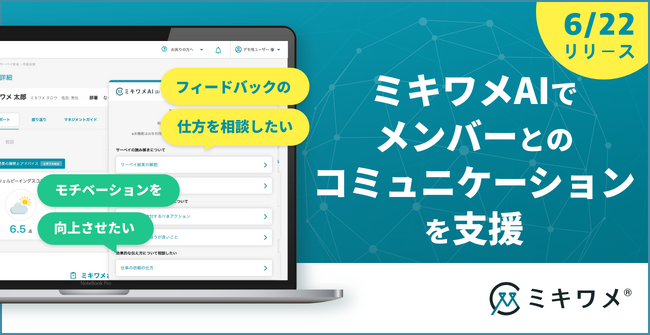 弊社パルスサーベイ「ミキワメ ウェルビーイング」において、従業員一人一人の性格や現在の心理状態を踏まえて、メンバーに対してどのようにコミュニケーションするべきかということや、マネジメントにおける悩みを相談することができる機能を新たにリリースしました。