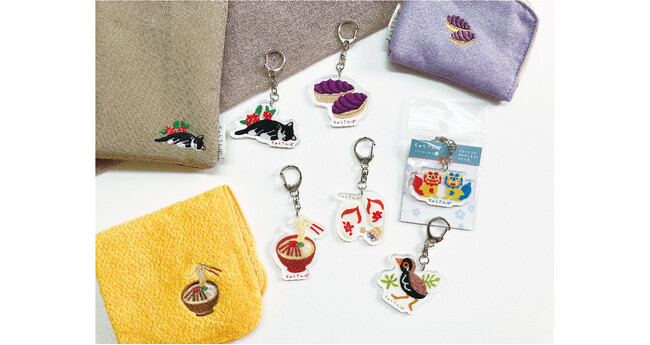 同シリーズは今治産タオルを使用したタオルハンカチや、ちょっとしたお出かけに便利なサコッシュやカードケース、他にもキーホルダーやコスメジェルを展開中。