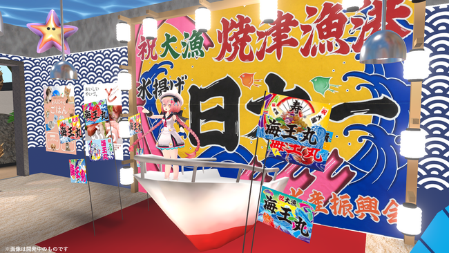 本イベントに、静岡県焼津市の三度目となる出展が決定。今回の出展では今まで以上に「さかなのまち焼津市」を体感いただけるよう、VR会場のほかにスマートフォンからもアクセス可能なWebブラウザ会場での出展、さらにリアルイベント「バーチャルマーケット2023リアルinアキバ」での出展も決定いたしました。