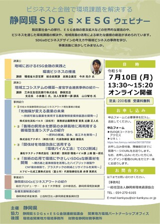 7月10日オンライン開催 環境課題への取組事例等を紹介 静岡県SDGs×ESGウェビナー