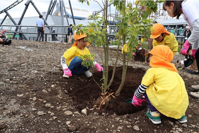 7月20日(木)に大型コースター「ZOKKON」がオープンする富士急ハイランド(山梨県富士吉田市)では、6月23日(金)に地元の保育園(山中湖村立平野保育所)のお子さまとともに、「ZOKKON」敷地内で植樹イベントを開催いたしました。