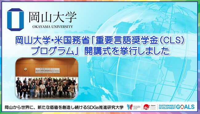国立大学法人岡山大学(本部:岡山市北区、学長:那須保友)は、米国務省により選抜された全米トップクラスの大学生・大学院生が他国の言語と文化を集中的に学ぶ「米国務省重要言語奨学金(CLS)プログラム」の日本唯一の派遣先として2019年度から採択されています。