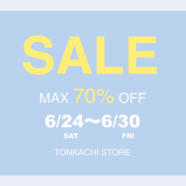 株式会社トンカチ(東京都渋谷区、代表:勝木悠香理)は、トンカチストア(https://shop.tonkachi.co.jp/)、トンカチ直営店「TONKACHI,6」(渋谷区代官山)(https://tonkachi.co.jp/shop/)にて、2023年6月24日(土)~30(金)まで、セールを開催しています。