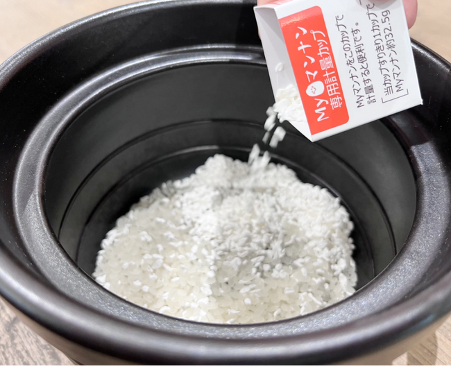 ➤「Myマンナン専用カップ3杯」+「お米1合」で、糖質&カロリー「33%カット」のごはんが2.5合炊き上がります。