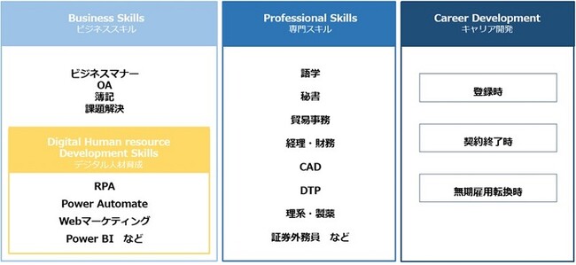 パーソルグループでは中期経営計画2026において、テクノロジードリブンの人材サービス企業として、ありたい姿「“はたらくWell-being”創造カンパニー」を目指しており、その中でも当社は派遣スタッフ等への人的資本投資の強化により、デジタル人材育成を含むリスキリング機会を積極的に提供し、キャリア形成支援の強化を図ることとなりました。