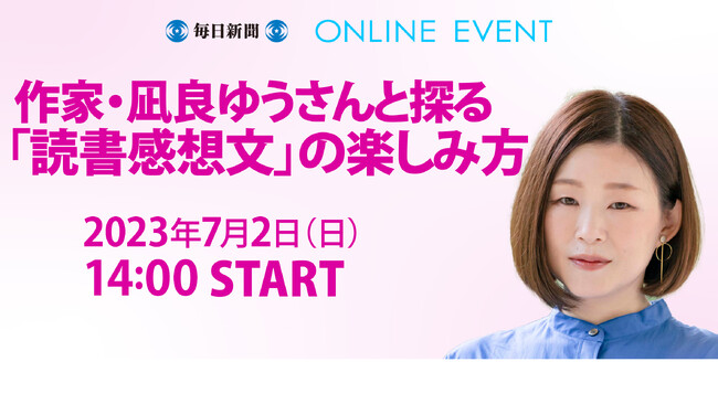 毎日新聞社(代表取締役社長執行役員:松木健)は7月2日(日)午後2時より、トークイベント「作家・凪良ゆうさんと探る『読書感想文』の楽しみ方」を開催します。ゲストは「汝、星のごとく」で2回目の本屋大賞と第10回高校生直木賞を受賞した凪良ゆうさん。読書感想文指導のベテラン・博田かおり先生とともに、「読書の楽しさ」や「文章での表現」について考えます。会場とオンラインの2種類の参加方法があります。読書好きの大人はもちろん、「本は好きだけど、夏休みの感想文は苦手」と感じている生徒の方も、楽しくヒントを探ってみませんか? ぜひご参加ください。