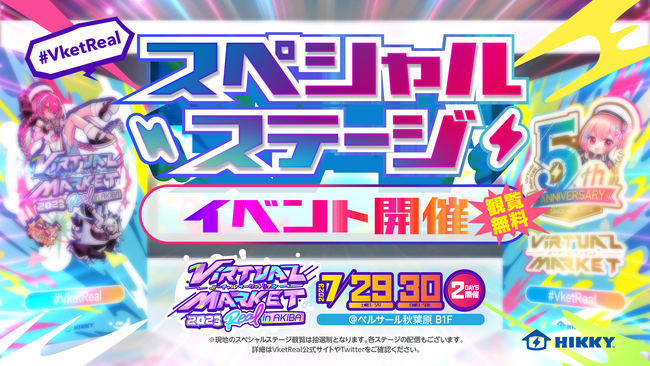 株式会社HIKKY(本社:東京都渋谷区、代表取締役:舟越靖)は、ギネス世界記録(TM)を取得した世界最大のVRイベント『バーチャルマーケット』初の試みとして、2023年7月29日(土)・30日(日)の2間に亘り、ベルサール秋葉原にてリアルイベント『バーチャルマーケット2023リアルinアキバ』を開催いたします。