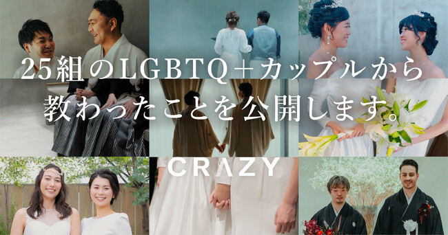 「IWAI OMOTESANDO」を中心にウェディング事業を展開する株式会社CRAZY(東京都渋谷区/代表取締役社長 森山和彦)は、すべての愛が祝福される世界の実現に向けて、これまで25組のLGBTQ+カップルのウエディングセレモニーのプロデュースを行い、得た学びを皆さまに共有いたします。