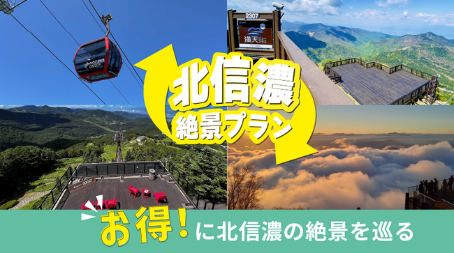 竜王マウンテンリゾート SORA terrace(株式会社北志賀竜王)、野沢温泉スキー場 長坂ゴンドラ(株式会社野沢温泉)、志賀高原ゴールデンライン(志賀高原リゾート開発株式会社)及び、満天ビューテラス(株式会社S&T観光開発)が連携し、2023年7月1日(土)より北信濃の絶景や観光施設をお得に巡ることができるチケット割引プランを開始いたします。