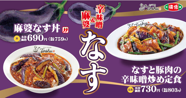 中華料理店「れんげ食堂Toshu」「中華東秀」を展開しているイオングループのオリジン東秀株式会社(本社:東京都調布市/代表:沢村 弘也)は、7月5日(水)より、「なすと豚肉の辛味噌炒め定食」と「麻婆なす丼」を期間限定で販売いたします。