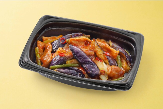 ■一品料理 なすと豚肉の辛味噌炒め 本体価格550円(税込価格605円)